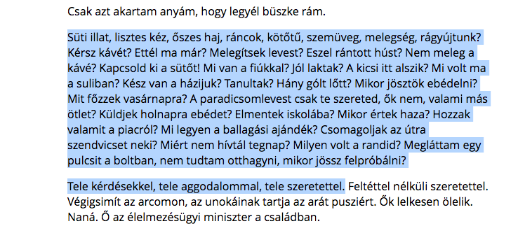Ó, ha tudnátok, hogy ami nektek jó kis történet, vagy akár szép! izgalmas!, az a nőknek hányszor beleerőszakolós, beledumálós, feledhető, fájdalmas, vagy utóbb bánják meg, amikor jön a következő ekkora szenvedély, és őket dobják, mellőzik, teherré válnak!