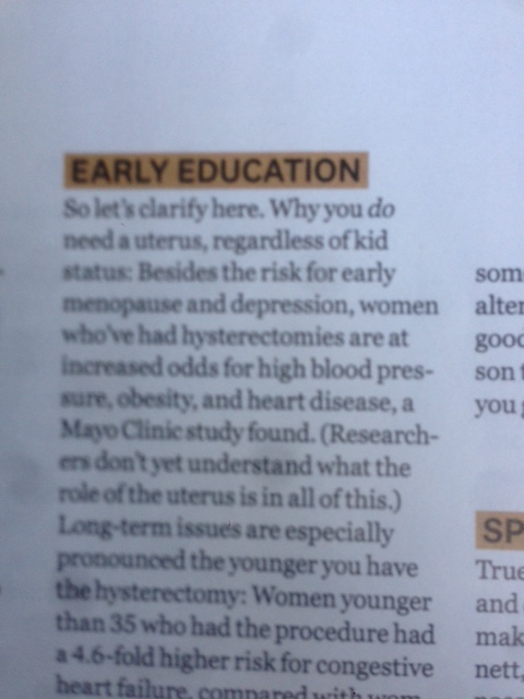 Még ma sem értik, miért, hiszen maga a méh nem termel hormont, vagy csak keveset (?), de valamiért nagyon is szükséges szerv. A méheltávolításnak durva következményei vannak: korai klimax, elhízás, depresszió és metabolikus betegségek (megint megvettem az Asszonyok egészsége című lapot, és pont abban is volt: