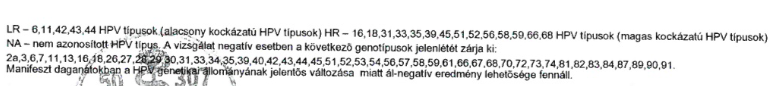 A poszt előtt (tudom ez is a poszt, de a lényegi rész, na) előtt leírom, hogy az egész beszélgetés azon alapul, hogy a méhnyakráknál szinte mindig kimutatható HPV-fertőzés, ezért van ellene oltás is, mert okozatinak tartják az összefüggést. És nem is általában a száznegyven? törzs valamelyike, hanem a veszélyes törzsek okozzák a bajt, és ezek egy része (a leggyakoribbak) ellen van oltás. LR: low risk (rákszempontból, ettől még nőhet karfiol a puncid helyére!), HR: high risk. Ennyiféle van, és ezt vizsgálja a széles spektrumú diagnosztika: