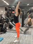 5. Oldalemelés 15 ism.,. 6. vállból nyomás fej fölé, 15, 7. döntött törzsű evezés 15 db, ez mind a 15 fontos súlyzópárral. 8. Csípőemelés gépen, 40 kilót pakoltunk rá a bemelegítő kör után. + Az utolsó két körben nagy kedvencem, hátraereszkedés a Sissi-szerkezetben: