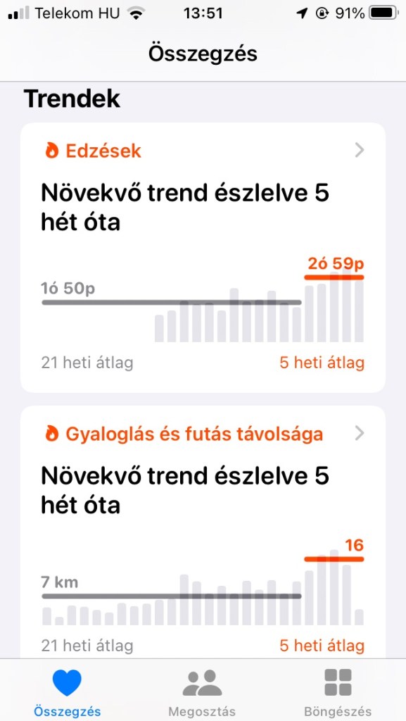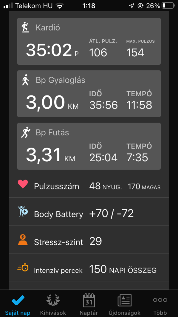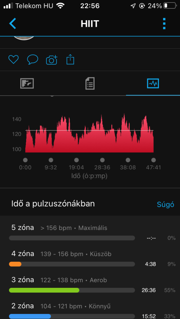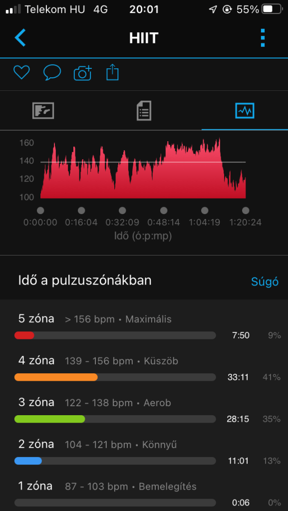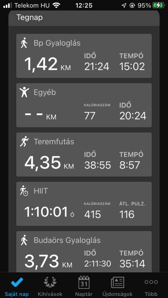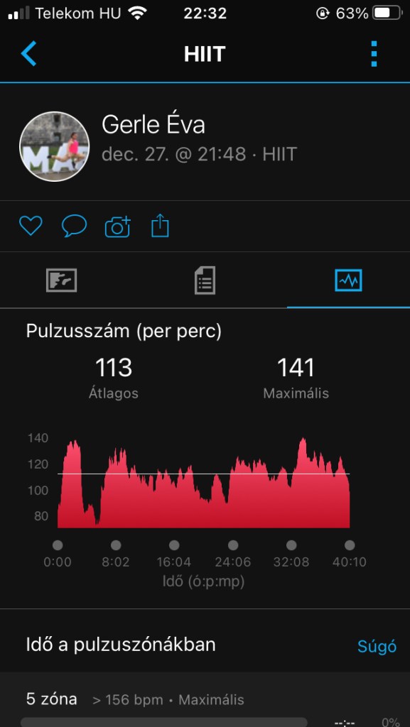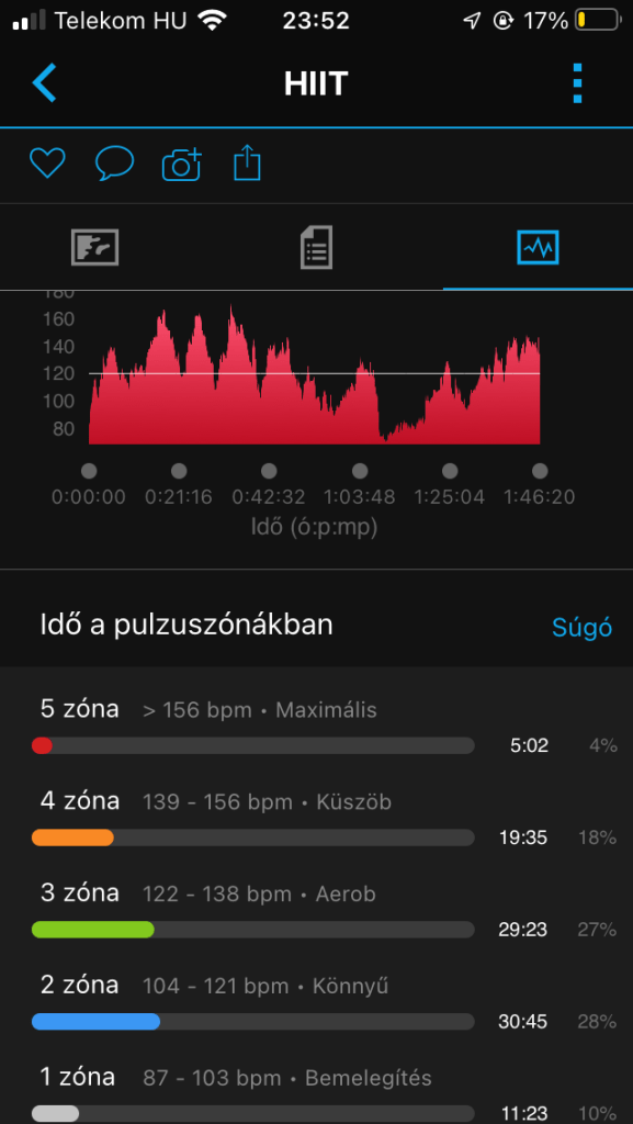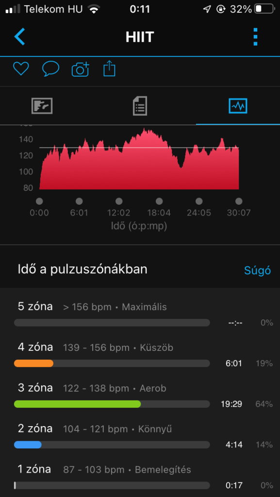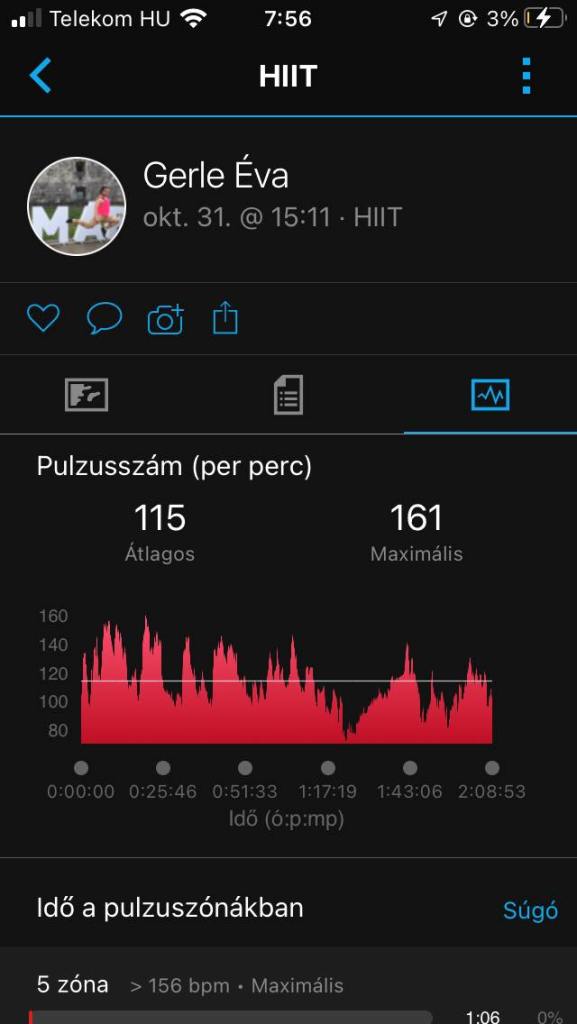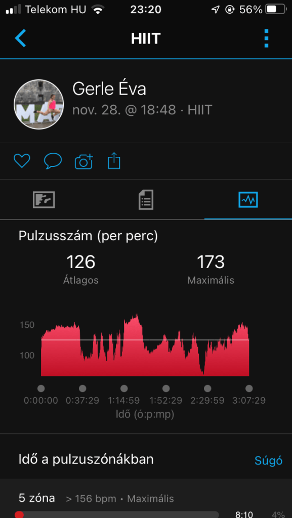 Az ilyen mérésekkor a HIIT edzés része a futás, külön adatom nincs, de az elmúlt két hétben elég sok volt.