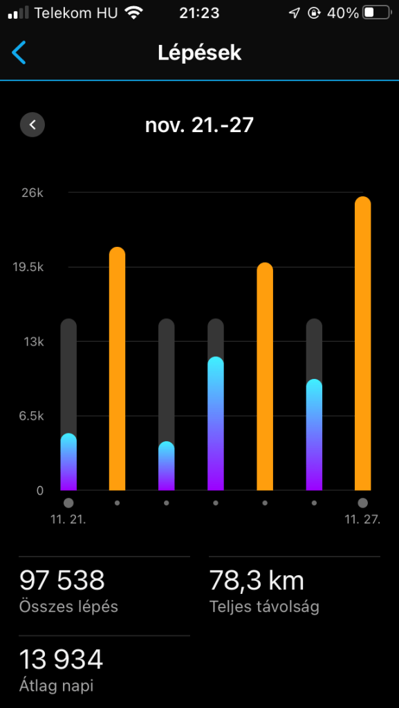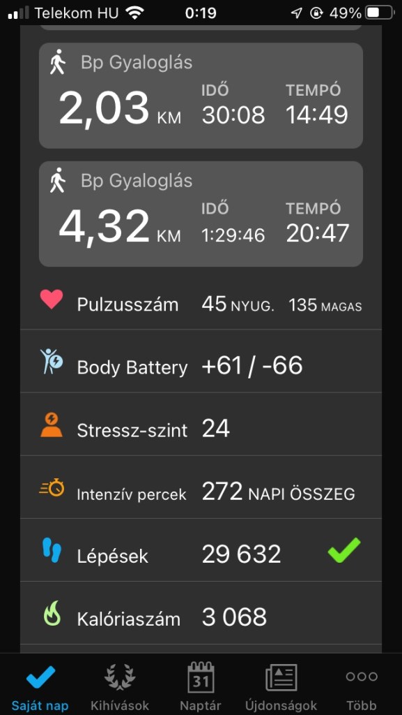 Három tunya nap után (3-6 ezres lépésszám) ma 22 ezer (nyerem az ehetit), a terembe le és haza föl is nagyrészt gyalog mentem.