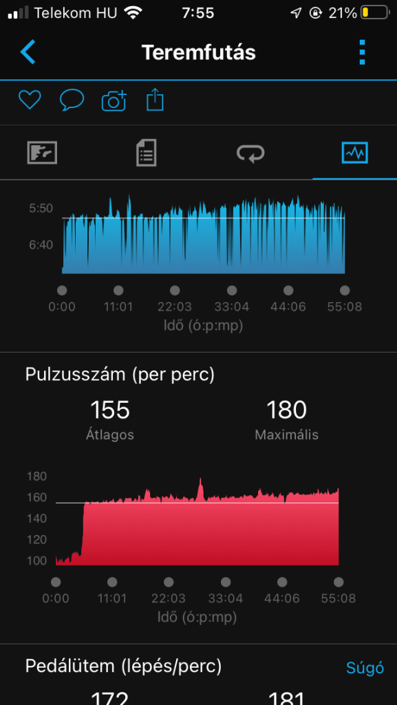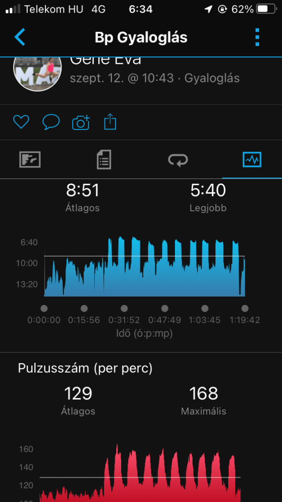 maximális pulzus: 176 a sprinteknél, a kocogós 145-155 (és tartósan annyi marad)