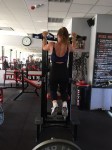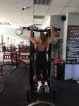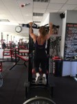 Egy másik kör, 3-szor: húzódzkodás gépen (27,5 az ellensúly), hasazás ferde padon felülés 30 db (4-szer), keresztbe húzás közelről csigás gépen, 10 ismétlés.