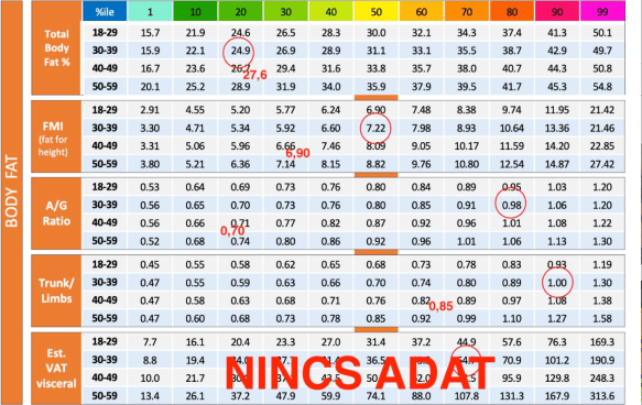 Zsír (ezt a DEXA-m is írja: az összzsírom percentilise 22-es. Hogy jutott eszébe ilyen zsír mellett korholni a BMI miatt?):